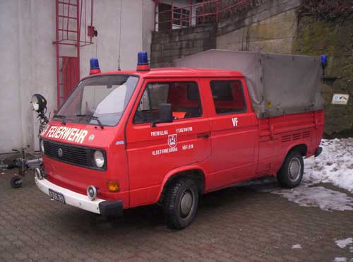 Auch das Mannschaftsfahrzeug VW-Bus musste mittlerweile ersetzt werden. Es wurde eine neue VW-Pritsche angeschafft und als Kleinlöschfahrzeug eingerichtet.